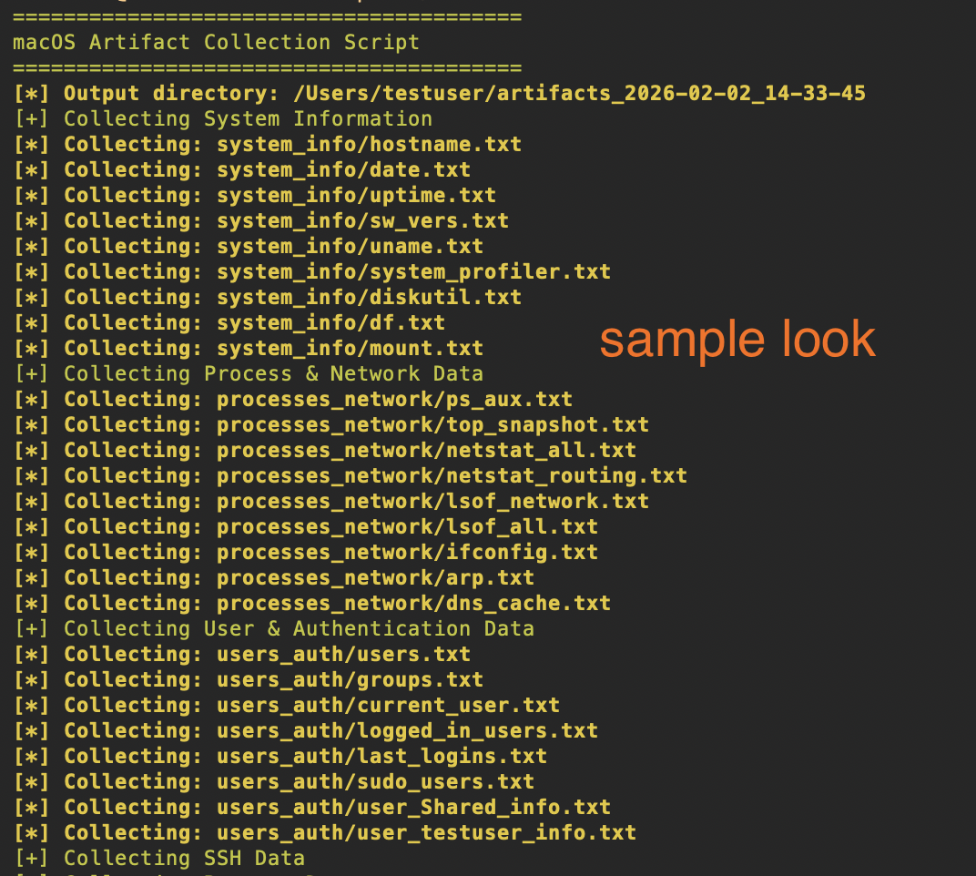- Malicious Behavior Indicators: Shell history (bash/zsh), profile scripts, cron jobs, Launch Agents/Daemons, etc